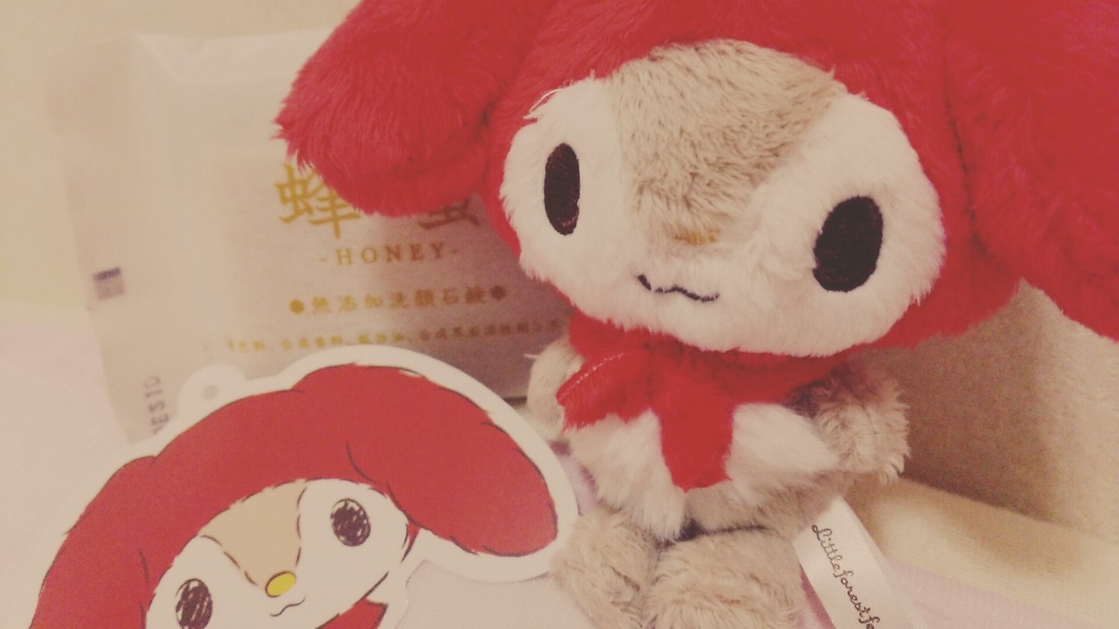 めろぉ 前買い損ねためろぉちゃんお迎えした<3XD可愛過ぎて鼻血が出そう!! マイメロちゃんのはとこです。初めて見たときから一目惚れで絶対欲しかったので、げっとできてうれしい〜X)今日は白の世界とららぽーとに行った!ピンクのめろぉちゃんも是非欲しい!!^-^*背後の「蜂蜜」は洗顔石鹸。富山の蜂蜜と聞いて、なんとなく買った〜。