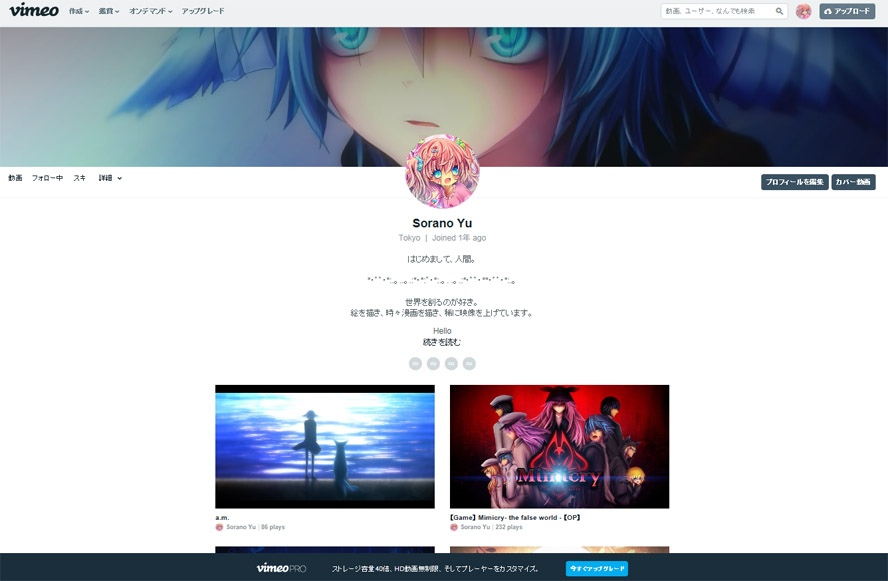 vimeo Oh〜! Vimeoのマイページがめっちゃオシャレになってる〜:)こういうスタイリッシュなマイページ良いよね。あ〜来年中に転職しよ^_^もうだいぶお花あげたからそろそろ解放してくれるかな?機械が壊れなくなったのは有難かったよ。生きてる人間に何言っても無駄なんだよ^_^